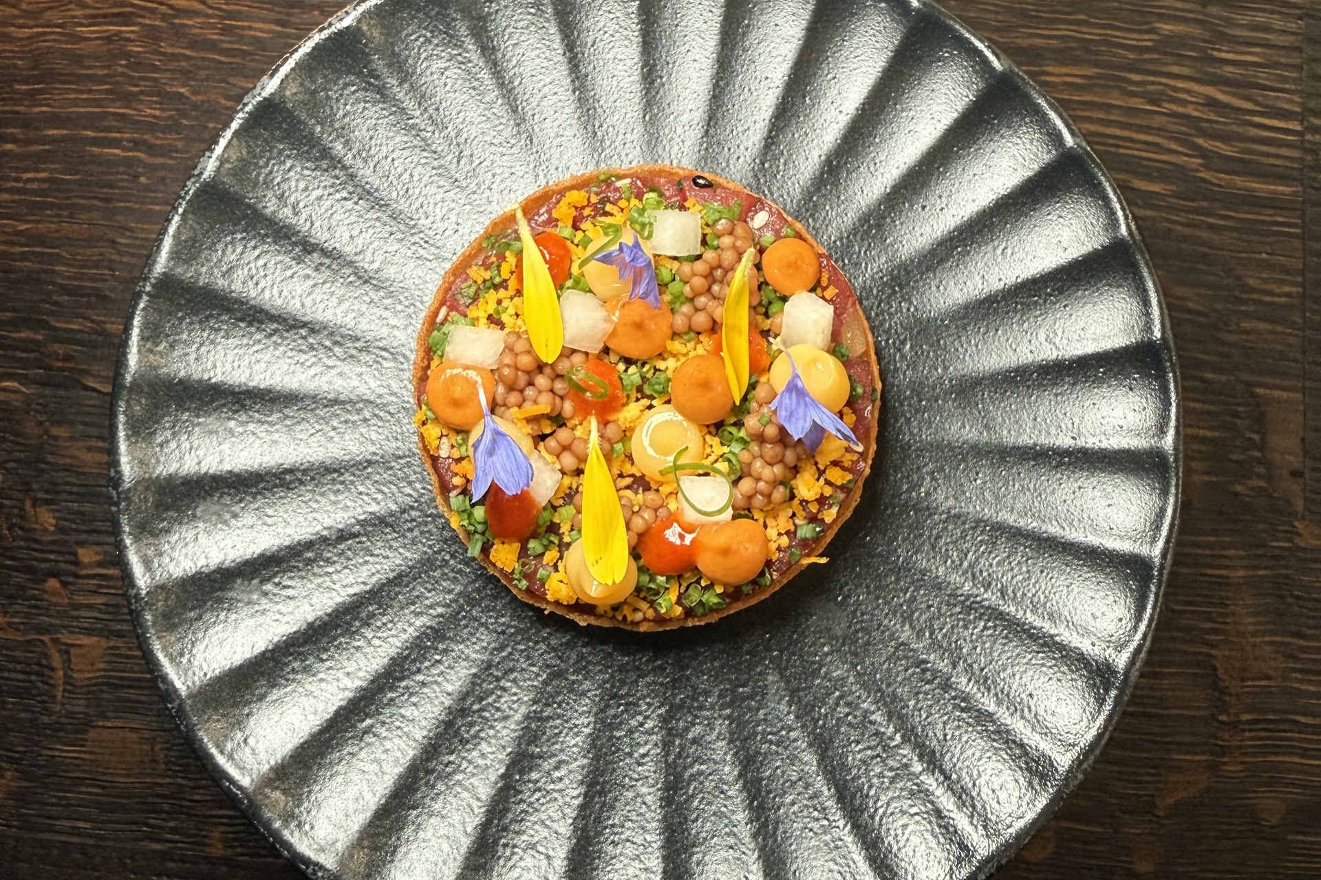 Ein Gericht durchbricht bewusst das Prinzip der ständigen Erneuerung: Das koreanische Beef Tatar mit Gochujang und Nashi Birne. Es ist eine Ausnahme und genau das macht es so besonders. Während im Taian Table Menüs konsequent wechseln, landet dieses Gericht immer wieder auf der Karte. Warum? Weil es gefragt ist. Weil es funktioniert. Weil es emotional trifft. Und tatsächlich: Dieses Tatar ist mehr als ein Klassiker. Es steht für eine moderne Aromatik: Schärfe durch Gochujang. Präsent, aber nie dominant. Das Gegenspiel bildet die fruchtige Frische der Nashi Birne. Die Textur ist perfekt – fein, aber mit Struktur. Ein Gericht, das zeigt: Wiederholung ist erlaubt, wenn sie Exzellenz bedeutet.