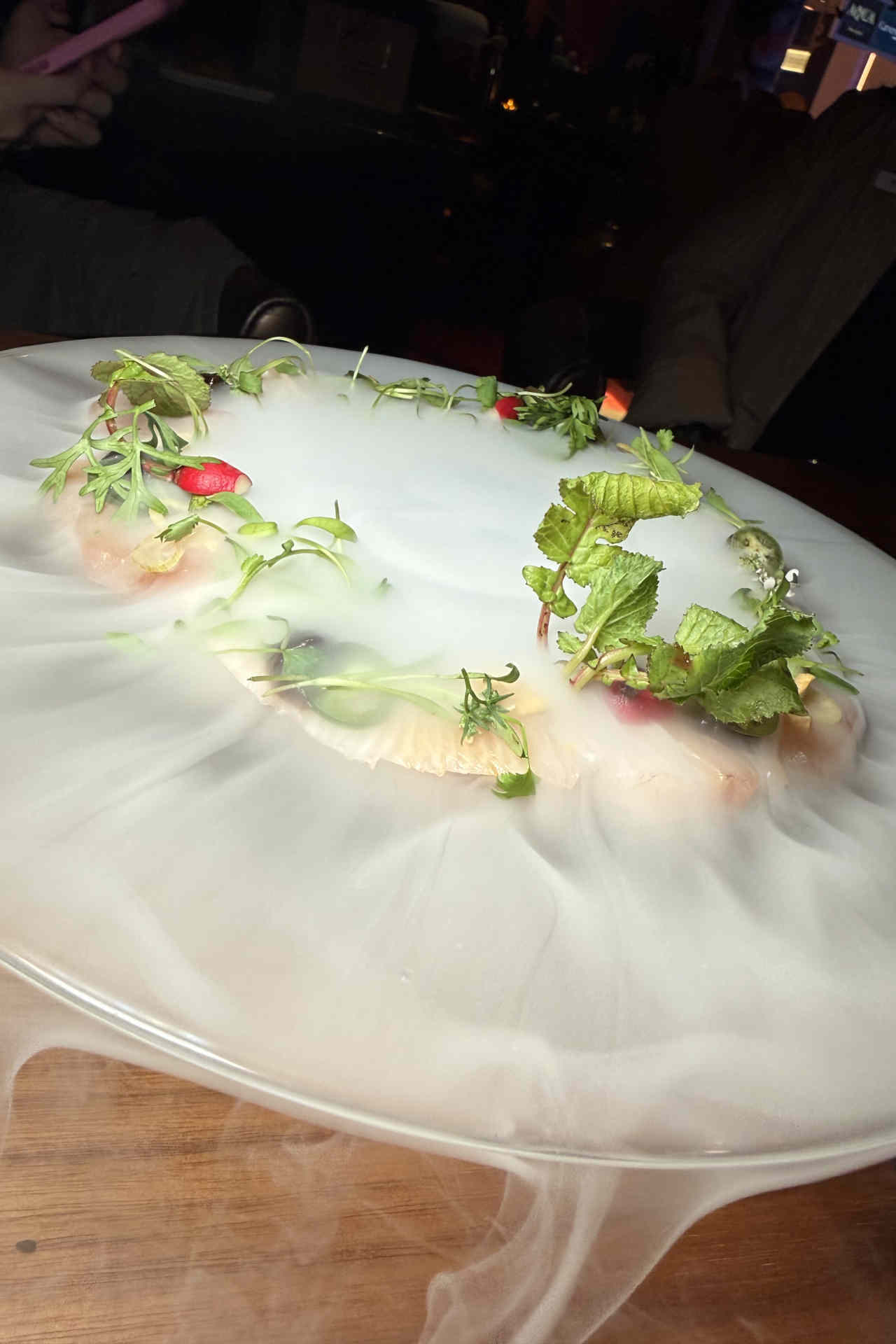 Modern Japanese Dining mit Erlebnisfaktor pur: Kusa Nori ist mehr als Sushi. Es ist Inszenierung. Koi-Fisch-Elemente in Architektur und Decke, intime Beleuchtung, High-Energy-Sushi-Bar und Teppanyaki-Grills, hier passiert etwas. Einige Gericht werden mit Stickstoff serviert und können somit in einer Nebelschwarde vor dem Genuss bestaunt werden.