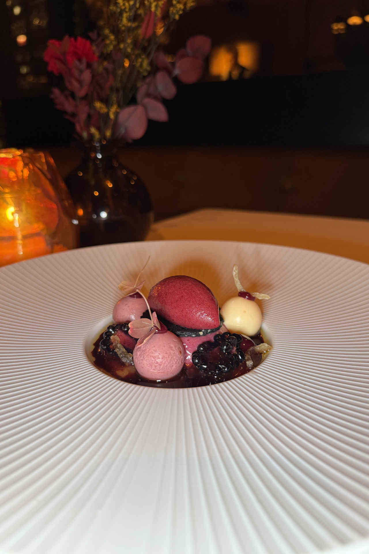 Besonders in Erinnerung bleibt jedoch die Fähigkeit, klassische Produkte neu zu denken. Ein Beispiel: Signature Popcorn Eis mit Kaviar. Was zunächst ungewöhnlich klingt, funktioniert überraschend präzise und zeigt genau das, was Bougainville ausmacht: den Mut, anders zu sein. Auch Gerichte wie Pekingente mit Mandarine greifen vertraute Elemente auf und interpretieren sie neu.